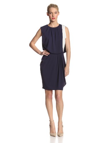 DKNYC Women's Drop Shoulder Draped Front Dress with Exposed Zipper