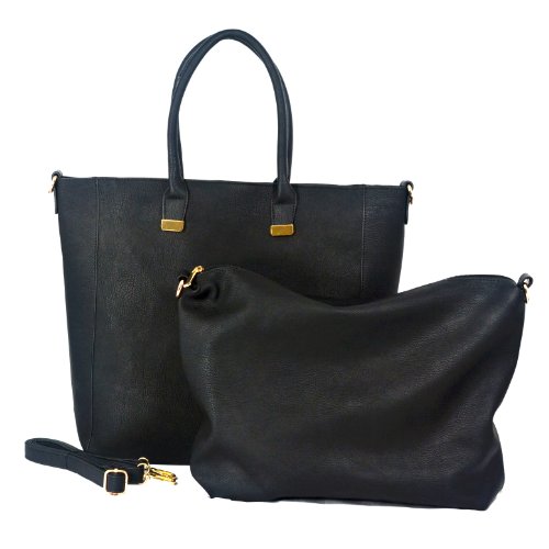 - The spacious interior includes a removable leatherette pouch (which can be used as a purse on its own) that features lining, 2 pocket-style organizers, and 1 zippered pouch