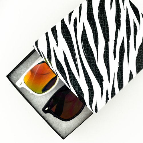 - Store your precious glasses with the Included Stylish Zebra Print Glasses Box.