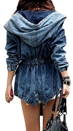 Jeans Style:Jean Jacket Size:One Size Color:Blue Material:Wash Water Denim Unique style, big hoodie collar design, with slim waist belt, sof...