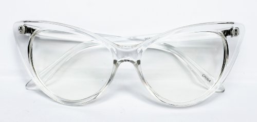 Super Cat Eye Glasses Vintage Clear Inspired Mod Fashion Clear Lens Eyewear